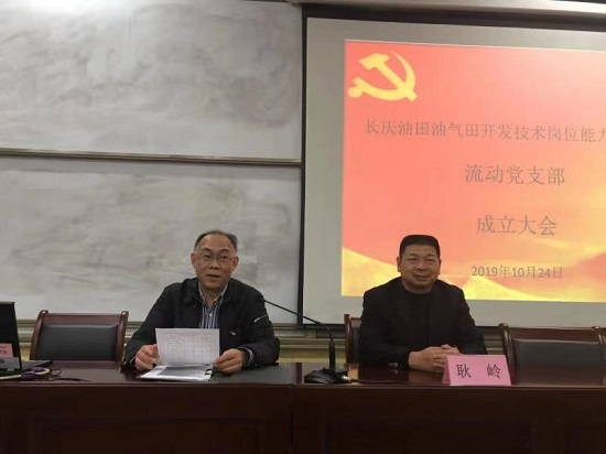 10月24日下午,长庆油田公司油气田开发技术岗位能力培训班全体党员在培训中心隆重举行了流动党支部成立大会。继续教育学院党支部书记耿岭、副院长吴民生以及本期参训学员中的20名正式党员、10名预备党员参加了成立大会,大会由继续教育学院党总支委员、副院长吴民生主持。
