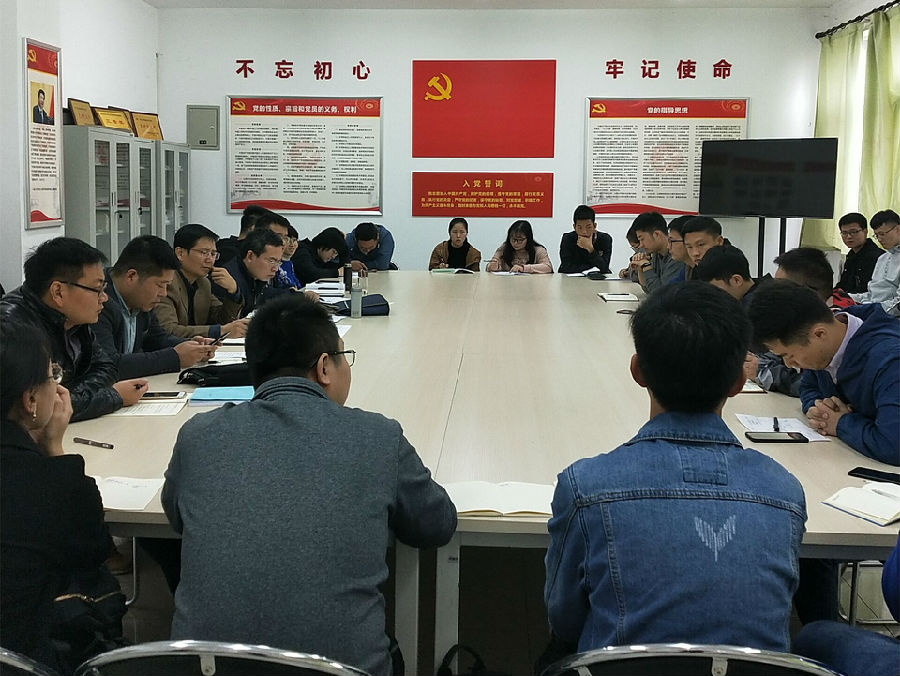 首先,刘晓阳老师对学院2019年下半年党员发展进行了工作安排,对学院学生党支部“不忘初心、牢记使命”主题教育的学习教育工作开展情况进行了阶段总结和工作部署;学生党建办公室主任金卫栋对近期常规性和创新性工作进行了梳理。