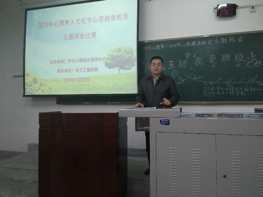 为进一步加强大学生心理健康教育工作,落实beat3652019 年心理育人文化节系列活动,10月23日中午,由学生心理成长指导中心主办、电子工程学院承办的“朋辈互助,有爱班级”心理育人主题班会比赛在A区217教室举行。学生工作部(处)副部(处)长庞秉谦、部分院(系)主管学生工作负责人、心理辅导员、学生心理成长指导中心指导老师、参赛班级心理委员及学生代表共70余人观看比赛。
