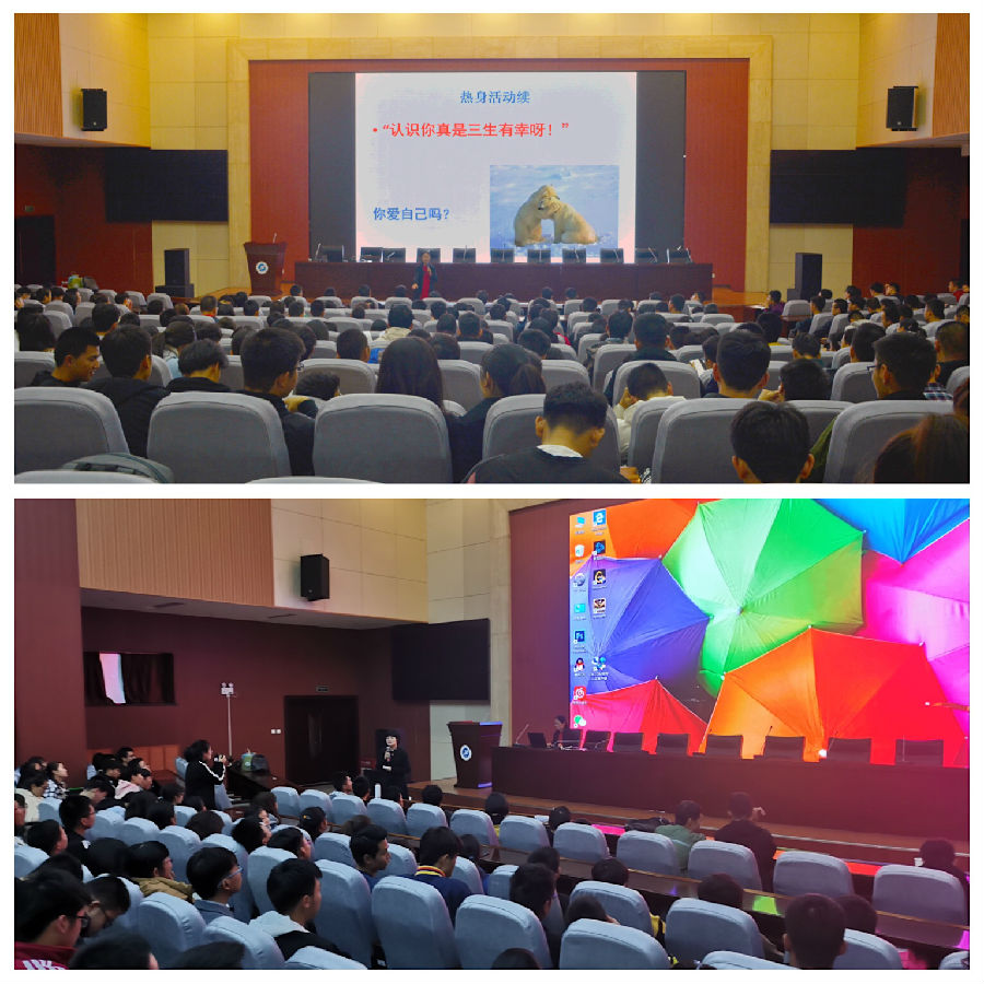 讲座中,肖琼老师用轻松快乐的活动让同学们感受缘分的重要性,用一个个鲜活的案例让同学们感悟生命的价值。肖老师谈到,很多心理问题的产生都源于关系层面,所以我们要重视身边良好关系的建立;同时她提出黑色生命力的概念,指出人们在经受过巨大的压力、逆境或创伤之后,渡过并幸存下来的人,最终会展现出来一种强大的力量,所以我们要感谢生命中每一个挫折和磨难,正是它们让我们不断成长。其次,肖老师提出怎样成为亲爱的自己的方法:合理比较、扩大视野、调整心态。在生活中我们要学会承认不幸、勇敢抗争、珍惜关系、感恩人际。最后,肖老师和同学们共同朗诵毕淑敏的诗歌《给自己的情书》,将讲座推向新的高潮。