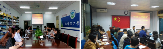 按照学校党委统一部署,学院党委立即以党支部为单位,逐个开展部署动员大会,正式启动“不忘初心、牢记使命”主题教育学习工作。9月11日至9月17日,学院实验中心、应用化学、环境工程、化学工程与工艺四个教职工党支部专题部署动员会先后在鄠邑校区C3实验楼316会议室、雁塔校区2号实验楼212会议室分别召开。学院党委领导司马文龙等全程参加、统一部署、逐一指导,各党支部成员全体参加,认真领会、扎实学习。