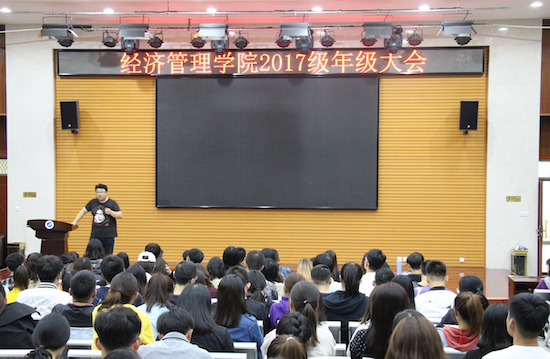 2019年9月18日12点,经济管理学院在鄠邑校区经管人文楼118教室召开本科生2017级年级大会,参与本次会议的有学生管理办公室主任刘冰老师,2017级辅导员王璟老师、李苗老师以及2017级全体本科学生。