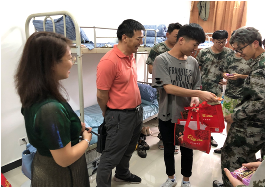 孟书记一行先后来到经管人文院系楼和16号学生公寓楼新生宿舍,给学生们带去了中秋月饼,为学生送去中秋的祝福。孟书记每到一个宿舍都与同学们进行了亲切的交流,向新生们了解军训期间的住宿和生活情况,悉心询问同学们来自哪里,生活环境的适应情况,特别对于离家较远的同学,询问他们是否有不适应的地方,并给予他们鼓励和建议。孟书记叮嘱大家要尽快适应大学生活,做好学习规划,室友间要和谐相处、互相帮助,遇到困难和问题及时向老师和学校寻求帮助。此外,孟书记一行还视察了新生宿舍的内务情况,对同学们能够保持宿舍卫生干净整洁,严格按照军训标准要求自己给予了肯定,并希望同学们把好的生活卫生习惯继续保持下去。