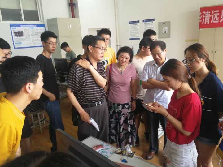 自早上9:00开始,73名同学分十二组将半个月训练以来完成的作品进行了展示和答辩,三个多小时的答辩展示后,学院领导对华清远见指导老师们评选出的十名优秀学生进行了表彰。答辩过程中,刘选朝老师对每一组的作品都进行了专业点评,指导同学们追本溯源,掌握原理,扩展思路。毕轶慧副书记在同学们作品展示中,询问了作品的功能和具体的操作步骤,及同学们实践训练中的心得收获,鼓励同学们珍惜实践机会,感恩指导老师,勤奋努力,提升专业竞争力。仵杰院长最后总结指出,同学们应紧跟时代潮流,把握专业优势,在嵌入式领域发挥专业特长,在物联网,互联网行业争取有所建树。