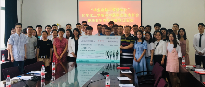 6月26日下午,化学化工学院“毕业启航,筑梦知化”2019届毕业生表彰会在鄠邑校区办公楼203会议室召开。学院党委书记司马文龙,院长王文珍,学管办主任屈敏佳,毕业班辅导员张少良,2019届毕业生代表及获奖代表等50余人参会。会议由学院党委副书记高黎主持。
