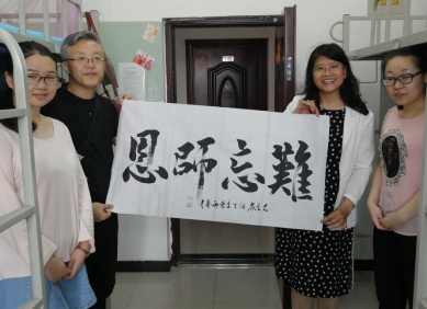 学院各位毕业生纷纷感谢母校四年的悉心培养,感谢领导老师一直以来的关心关爱,同时表示将谨记师长的叮嘱教导,争取今后以优异成绩回报母校和社会。化工专业雷雨柔同学将自己题写的一幅“师恩难忘”作品赠与学院,衷心希望母校越办越好。