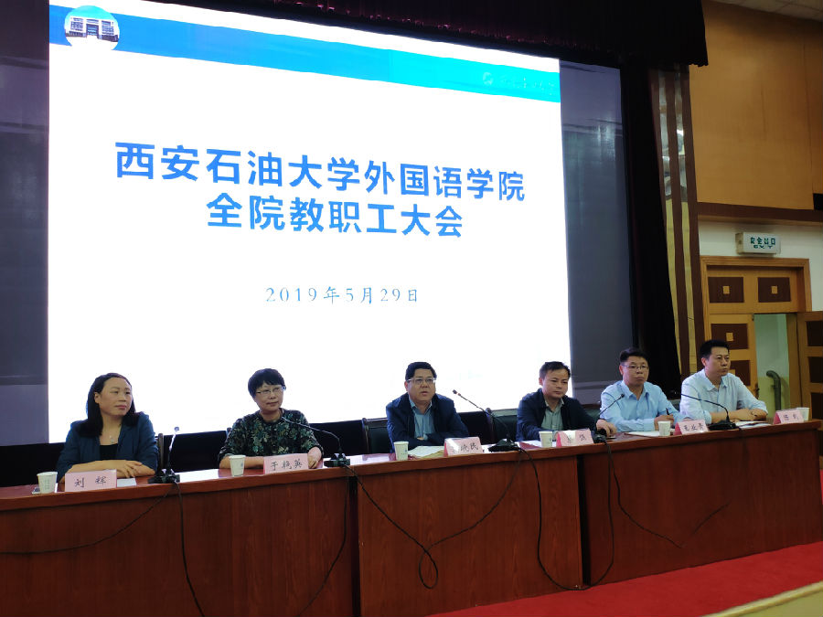 5月29日下午,外国语学院在雁塔校区学术报告厅召开全院教职工大会暨学院系(部)、中心干部任职宣布大会。学校总会计师、联系学院校领导樊晓民出席大会。会议由外国语学院党委书记蔡强主持。