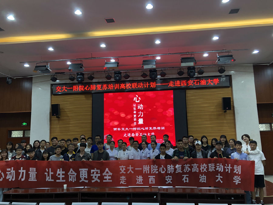 2019年5月29日下午,西安交通大学第一附属医院心肺复苏培训高校联动计划第九站走进beat365官方网站鄠邑校区。此次培训的人员为校医院医护人员、教职工代表、及学生代表共200余人参加。