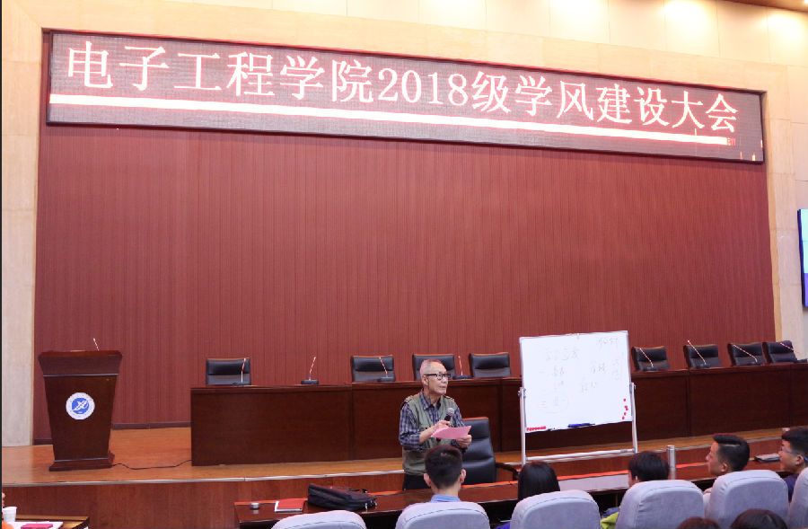 4月7日晚七点,电子工程学院于鄠邑校区弘石报告厅举办了题为《你是人间四月天--生逢其时,怀揣梦想,奋发有为》的讲座。本次讲座邀请到了我院退休老教授汉泽西担任主讲嘉宾,讲座由学院党委副书记毕轶慧主持,学院2018级辅导员钱宇航以及2018级全体同学参加了本次讲座。