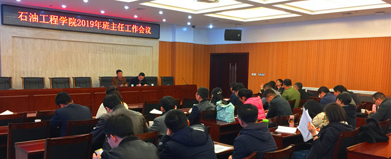 3月13日上午10:00,石油工程学院2019年班主任工作会议在鄠邑校区图书馆第一会议室召开,学院党委书记马勇、党委副书记张建高、各年级辅导员及全体班主任共30余人参加,会议由2015级辅导员朱战威主持。