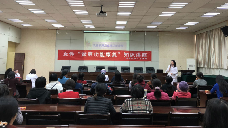 乳腺增生和盆底功能障碍性疾病是女性常见的慢性病,严重影响部分女教职工的生活和工作。为了提高广大女教职工对这两种疾病的认知水平,大力宣传慢性病的防治知识,迎接“三八妇女节”的到来,动员全社区积极参与慢性病防治工作。 2019年3月4日下午校医院联合学校工会,邀请西安交通大学医学院妇产科硕士,西安市卫生学校妇产科讲师,主治医师常燕举办关于女性“乳腺护理及盆底功能康复”健康知识及咨询活动。校医院部分医务人员、学校女教职工共计120余人聆听了讲座。