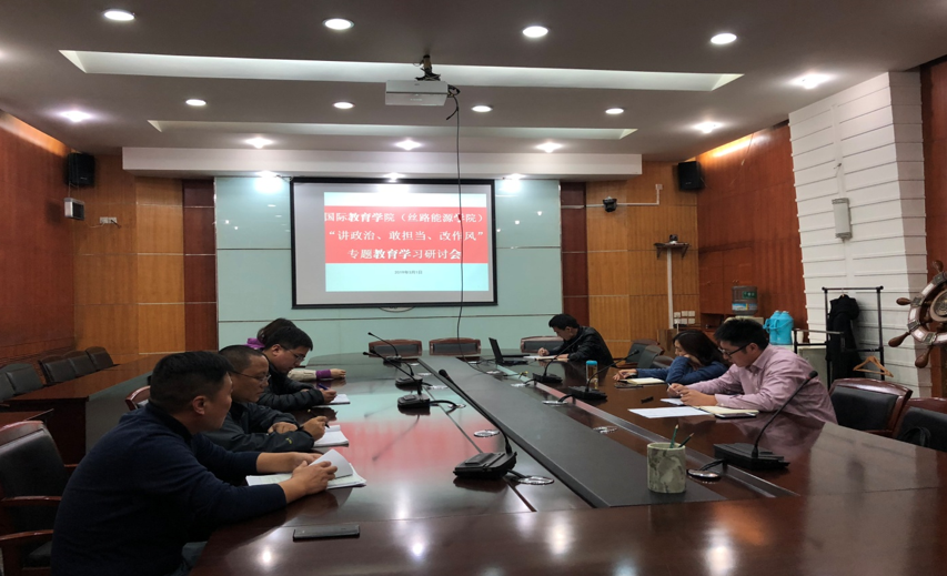 3月1日下午,国际教育学院(丝路能源学院)“讲政治、敢担当、改作风”专题学习研讨会在雁塔校区学术会议中心第四会议室召开。会议由副院长颜庭星主持,学院领导班子、处科级干部以及全体党员同志参加了会议。