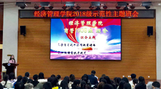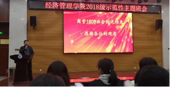 12月18日下午,经济管理学院在鄠邑校区经管人文楼118召开示范主题班会。党委副书记赵海涛、部分学工干部及18级全体班干部参加活动。