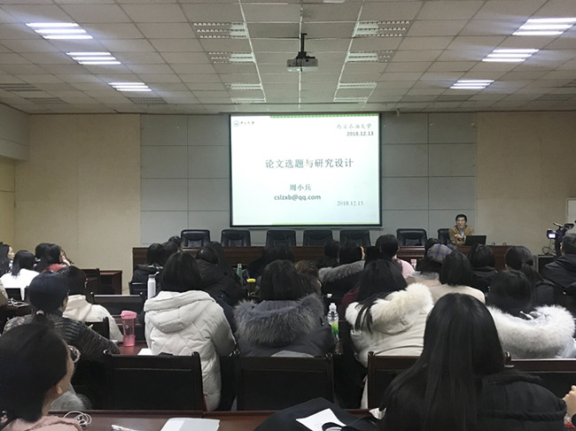 12月13日下午四点,人文学院在西阶第三会议室举办了以“汉语国际教育专业的论文选题”为主题的人文学术沙龙。本次讲座邀请到中山大学周小兵教授,部分教师及2018级汉语国际教育专业全体学生参加,报告前由黄庆丰副院长为周小兵教授颁发了人文学院客座教授聘书。