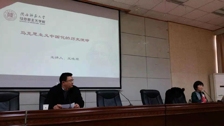 12月10日下午,由马克思主义学院举办的“思政大讲堂”系列学术报告会在雁塔校区会议中心第三会议室举行,陕西师范大学马克思主义学院王晓荣教授应邀为我院师生作了以“马克思主义中国化的历史使命”为主题的报告。报告会由我院副院长张海涛主持,我院党总支书记李渊及广大师生参加了报告会。