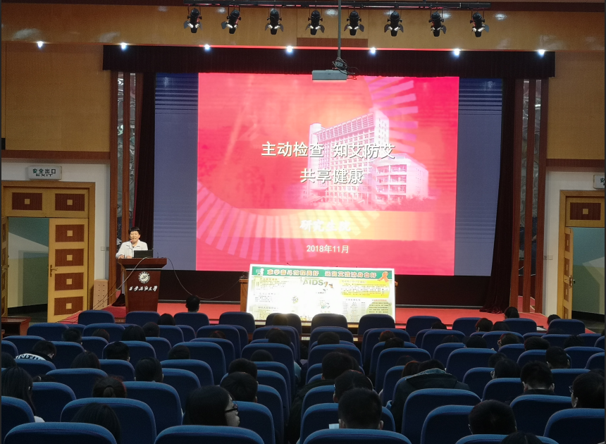 讲座通过大量实际数据向同学们展现了全国大学生感染艾滋病人数上升的局势,强调了高校开展艾滋病防治宣传教育的重要性和必要性等,同时结合临床病例与相关视频,全面讲解了艾滋病的感染自然史、基本症状、治疗方法以及针对此疾病我国目前开展的预防检测方式及免费治疗政策,并指出纠正了蚊虫叮咬、日常生活正常接触会被传染艾滋病的误区,使学生们更深入地了解了什么是艾滋病,艾滋病的传播渠道,艾滋病的广泛性以及艾滋病的预防等重要的知识,并引导同学们科学、理性的认识和对待艾滋病及感染人群。