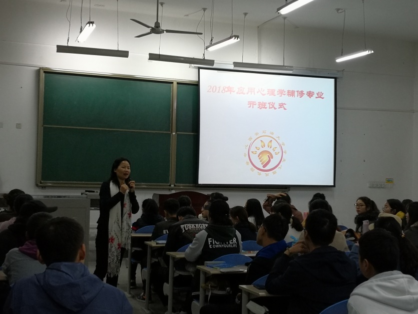 易和平副处长介绍了beat365辅修专业的历史、发展、对学校工作的贡献,结合亲身经历说明了辅修专业对人的全面发展的意义,他表态,教务处会全力支持心理学辅修专业的建设,最后,他代表学校向全体学生提出了学业与管理的要求,并预祝大家学业顺利。作为本次辅修专业的开设方,肖琼主任首先感谢学校对2018年应用心理学辅修专业的大力支持,对课程设置做了简短介绍,她提出应用心理学是目前beat365唯一在开的辅修专业,是“油缘”心理为学校学科建设做贡献的实际行动,勉力同学们合理安排时间,争取主修专业与辅修专业双赢发展。,随后,学生心理成长指导中心的任课教师分别结合自身成长,从专业视角、专业素养、专业发展等方面对心理学进行了阐释。最后,全体班委会成员一一表态要齐心协力,为为班级同学做好服务,促进同学们专业发展。
