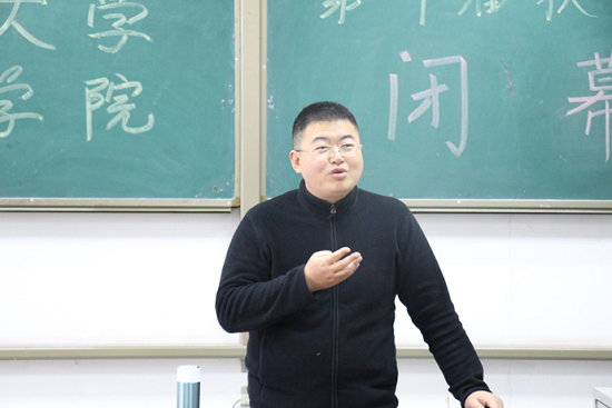 学院党委副书记赵海涛老师对本届运动会进行了总结。他对2018级参赛运动员、2018级全体同学进行了充分的肯定,对辛勤工作在赛场上的团学工作人员及老师们表示衷心的感谢。希望同学们能够通过学院提供的这样一个运动会平台充分展现自我,同时通过个人和集体项目增强守纪、互助、团结、向上的集体主义观念。对经管田径队进行了表扬,如果我们的选手、足球队、篮球队等都能像田径队一样,训练有强度、有计划,有钢铁般意志和奉献精神,今后必定能取得的更为优异的成绩。最后,赵老师希望同学们在课余时间能够放下手机,离开宿舍,多去两个地方:图书馆和运动场,丰富自己的知识,强健自己的体魄。希望同学们都是德智体全面发展的新时代娇子,都能迎着时代的朝阳,踏歌前行!
