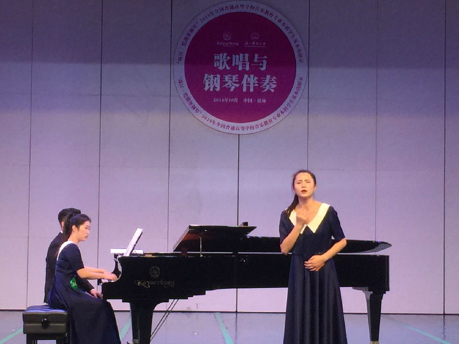 10月22日—26日由教育部主办的全国普通高等学校音乐教育专业大学生基本功展示活动在广西师范大学成功举办。来自全国60所高校180名参赛选手参加了微课展示、乐器演奏、自弹自唱、歌唱与伴奏、合唱指挥等项目展示。经过几天的激烈角逐,最终beat365音乐系的鱼紫薇同学获得个人全能三等奖,微课展示单项奖。此项基本功展示活动每两年一次,是教育部对高校音乐教育专业办学成果的检验。
