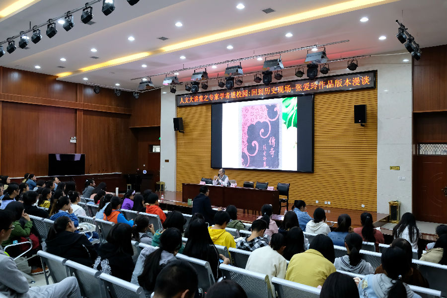 10月12日下午4点,“人文大讲堂之专家学者进校园系列讲座”在鄠邑校区3号院系楼118室举办。本次讲座邀请到了著名学者、华东师范大学陈子善研究员为我院师生作了“回到历史现场——张爱玲作品版本漫谈”专题学术讲座。