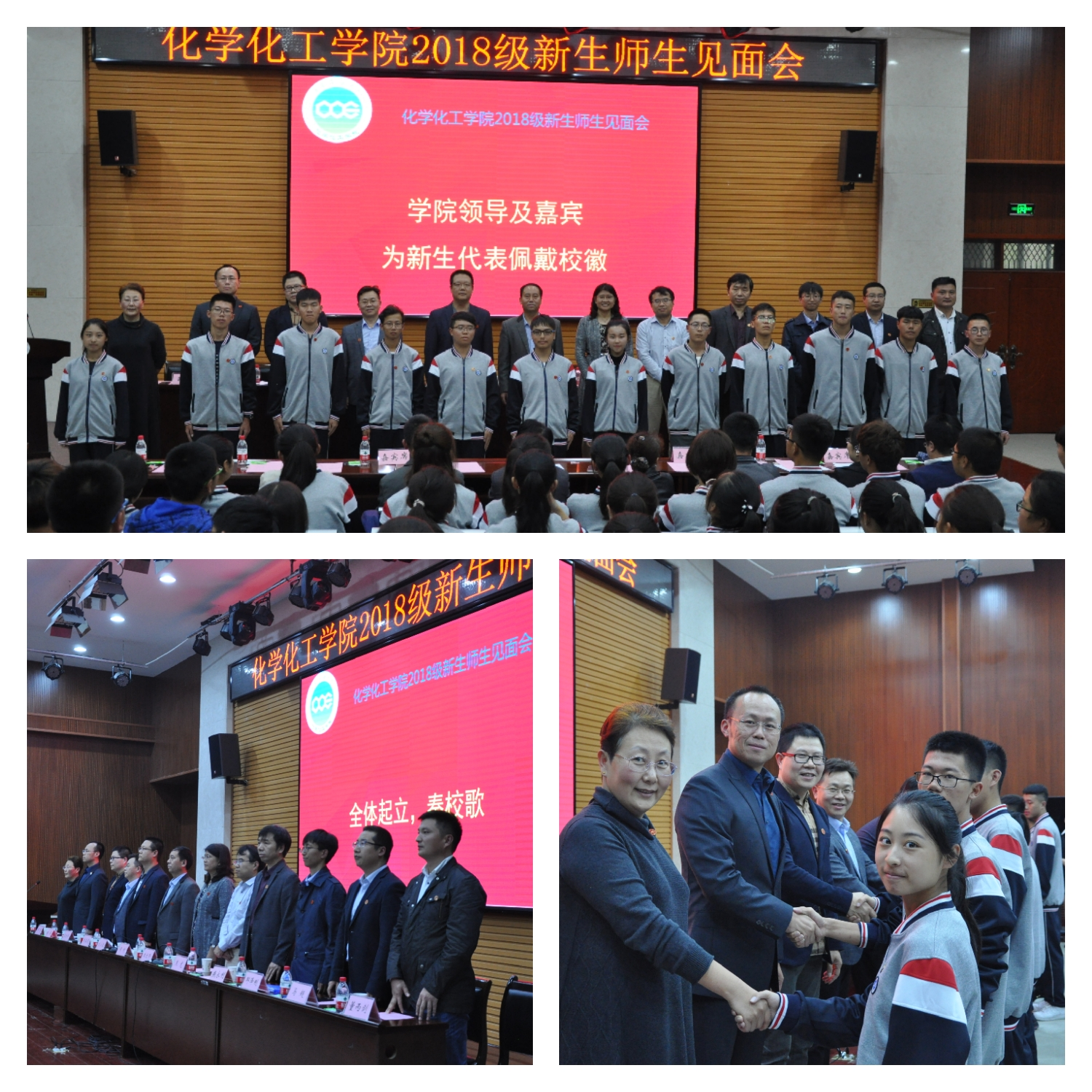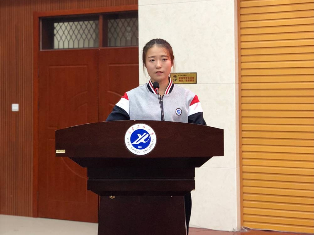 见面会上,学院领导及嘉宾为新生代表佩戴了校徽,参会老师和新生都为自己佩戴上了学校校徽。校徽佩戴仪式使得师生见面会更具有仪式感,让新生们更加以西石大人的身份而自豪、荣耀。应化1803班杨蓉同学在见面会上做了新生代表发言。
