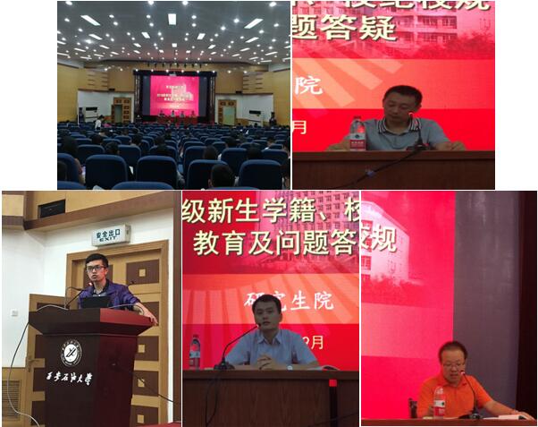 为进一步落实2018级硕士研究生入学教育工作,提高研究生日常学习生活质量,在学生工作部的指导下,9月12日至9月14日,在党委学工部的指导下,研究生院联合学生心理成长指导中心、保卫处、计划财务处、校医院等,在雁塔校区会议中心学术报告厅先后开展了法制安全教育、消防安全教育、新生学籍校纪校规教育及问题答疑、卫生防疫教育、心理健康教育等一系列入学教育专题报告。
