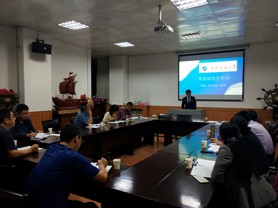 2018年9月16日晚19点,经济管理学院在雁塔校区2号教学楼1507会议室召开了学院2019年推免研究生面试答辩会,经济管理学院党委书记闫大维、院长王君萍、党委副书记赵海涛、副院长吴勋以及吴文洁、杨嵘、陈敏灵、刘笑明、宁宇新、李俊亭等学科带头人、教师代表、学工干部以及学生代表参加了答辩会。