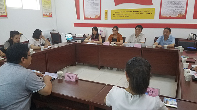 7月17日上午,beat365官方网站工会主席李方、人文学院党委书记袁玎一行六人,来到永寿县深入开展文化扶贫工作,就对接旅游品牌视觉系统设计、旅游市场营销策划等事宜开展座谈讨论。永寿县教育局负责牵线搭桥,县旅游局、文广局相关负责同志参与对接,对接座谈会在文广局会议室召开。