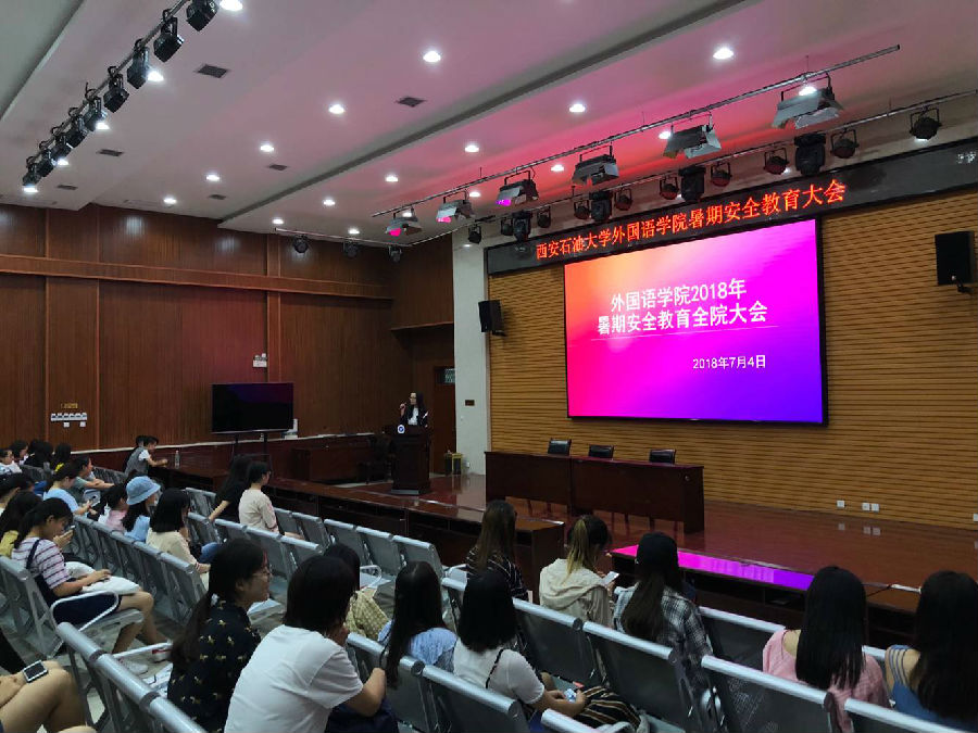 2018年7月4日晚19:00,我院于三号院系楼就业指导中心举行2018年暑期安全教育大会,本次大会主讲人为外国语学院2016级辅导员李洋甜老师,我院全体学生按时到场。