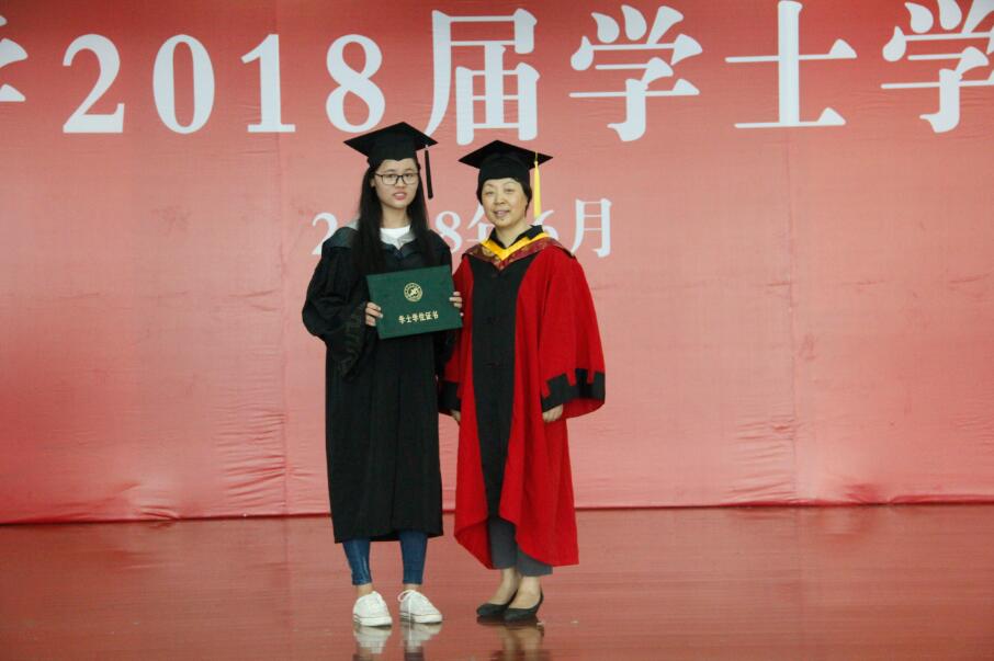 随后,授位仪式正式开始,在欢快的音乐声中,获得学士学位的同学们一一上台,由教授委员会各位导师授予学位,并合影留念。