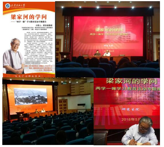——举办报告。5月4日下午,研究生院党委邀请省作协主席团顾问曹谷溪先生在雁塔校区为研究生院师生作了题为《梁家河的学问》的专题报告。研究生院党委领导、全体学工干部和研究生代表300余人聆听了报告。报告会上,曹老通过回顾习近平总书记在陕北黄土高原、在梁家河大队创办沼气的知青岁月,阐述了习近平总书记青年时代矢志不渝的理想追求、爱国为民的家国情怀、勤奋好学的进取精神、求真务实的良好作风和吃苦耐劳的优秀品质。本次报告会旨在让研究生牢记习近平总书记在北京大学师生座谈会上爱国、励志、求真、力行的谆谆嘱托,反响热烈。
