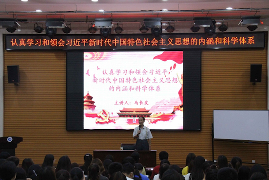 ——讲座报告深入学。6月6日下午,经济管理学院《认真学习和领会习近平新时代中国特色社会主义思想的内涵和科学体系》讲座在鄠邑校区经管人文楼118多功能厅举办。本次讲座由79岁高龄的马长发老师主讲,学院党员和入党积极分子代表近300人参加。马老师从紧紧把握习近平新时代中国特色社会主义思想提出的时代背景、紧紧抓住坚持和发展中国特色社会主义这一核心要义、紧紧抓住“八个明确”、紧紧抓住“十四个坚持”基本方略这四个“紧紧抓住”出发,深刻揭示了学习和领会习近平新时代中国特色社会主义思想的内涵和科学体系。