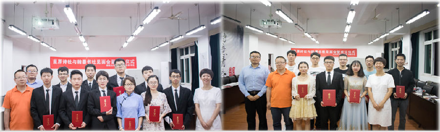 会议对星原诗社、翰墨书社的成立表示热烈祝贺,希望该两大社团今后多多举办有益活动,为研究生诗词书画爱好者搭建广泛学习、交流和展示的平台,为进一步推进beat365官方网站书香校园建设、营造良好校园文化氛围、弘扬中国传统文化做出更多积极贡献。研究生院团委书记高黎为两位社长颁发聘书,研究生院2017级辅导员、研究生会指导老师周钰桐,思想教育与管理办公室老师倪永良为两大社团授旗。