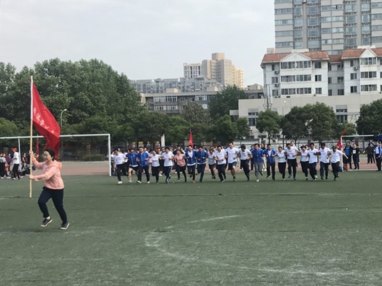 开幕式上,经济管理学院全体教职员工身着统一运动服,队伍整齐、斗志昂扬地经过主席台,绕场一周,团结协作的精神,充分展现了经管人良好的精神风貌。