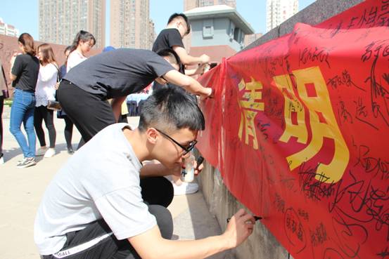 张伟副书记希望通过本次活动,同学们能够获得精神上的启迪,灵魂上的震撼,在今后的学习中要传承革命先烈的崇高精神和优良作风,“不忘初心、牢记使命,无私奉献,努力拼搏”。张伟副书记用一首诗概括了本次清明祭扫活动:出生入死为国清,翠柏苍松伴英灵。不忘初心传承在,牢记使命警钟鸣。栉风沐雨家国兴,砥砺奋进民族情。刺股悬梁勤为径,乘风破浪自鹏程。同学们受到极大鼓舞,纷纷表示希望能够继承革命先辈的优良传统。