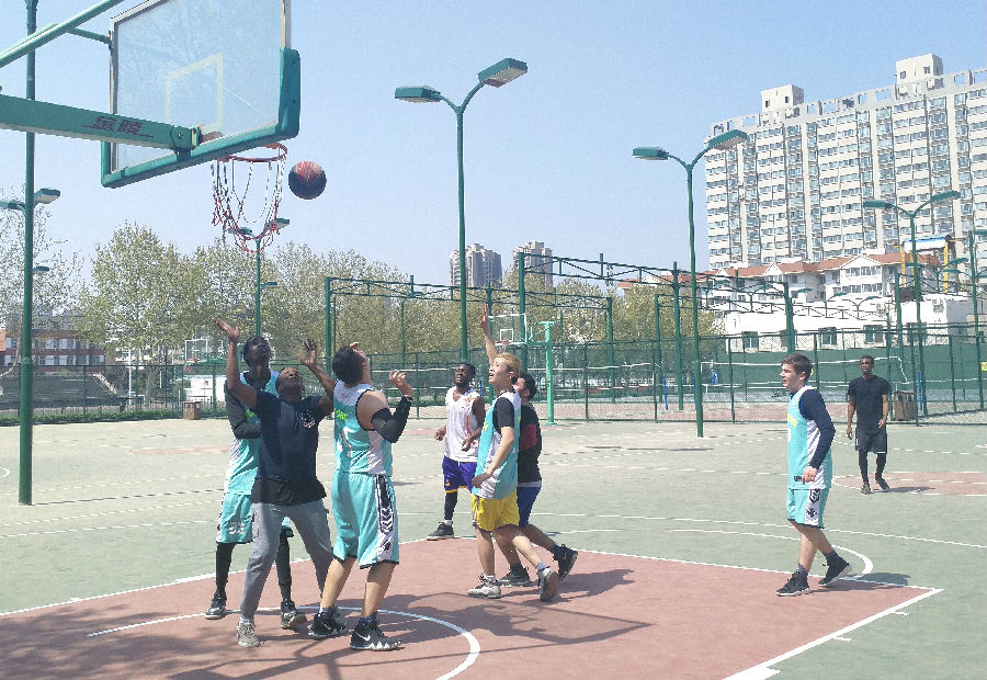 3月28日中午,国际教育学院在雁塔校区篮球场举行了新老国际学生篮球友谊赛。全体辅导员及学生们观看了此次比赛。