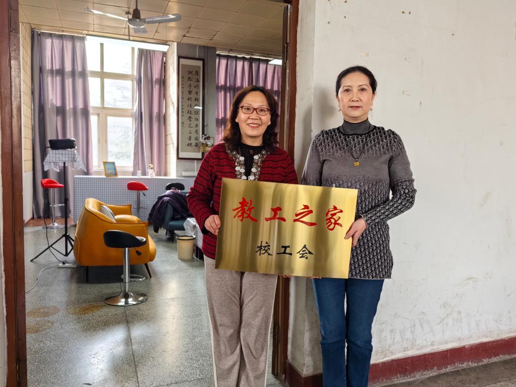 仪式上,袁玎与朱玮共同为“教工之家”揭牌,校工会人员参观并体验了 “教工之家”的设施。