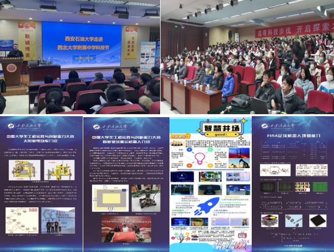 学校高度重视中学科技节展演活动,精心组织参展作品,选派展演了2023年中国大学生工程实践与创新能力大赛国赛铜奖作品《太阳能电动车》和《智能物流搬运机器人》、第十九届“博创杯”嵌入式人工智能设计大赛全国总决赛特等奖作品《智慧井场》、2023中国机器人大赛FIRA小型组半自主赛项冠军作品《半自主足球机器人软件系统》等4项科技作品,分两场次为300余名中学生做宣讲演示。
