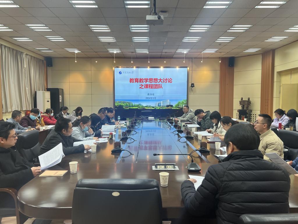 为持续深入开展学习贯彻习近平新时代中国特色社会主义思想,全面学习贯彻党的二十大精神,进一步落实中国共产党beat365官方网站第三次代表大会要求,统一思想、凝聚共识,深化本科教育教学改革,根据《beat365官方网站关于开展本科教育教学思想大讨论活动的通知》工作安排,1月8日下午,教务处开展了以“推动课程教学由‘以教为中心’向‘以学为中心’的转变,不断提升教学能力水平,增强教学质量意识”为主题的课程团队教育教学思想大讨论研讨会。各院(系)教师代表及教务处相关负责人参加会议。会议由教务处副处长吴勋主持。
