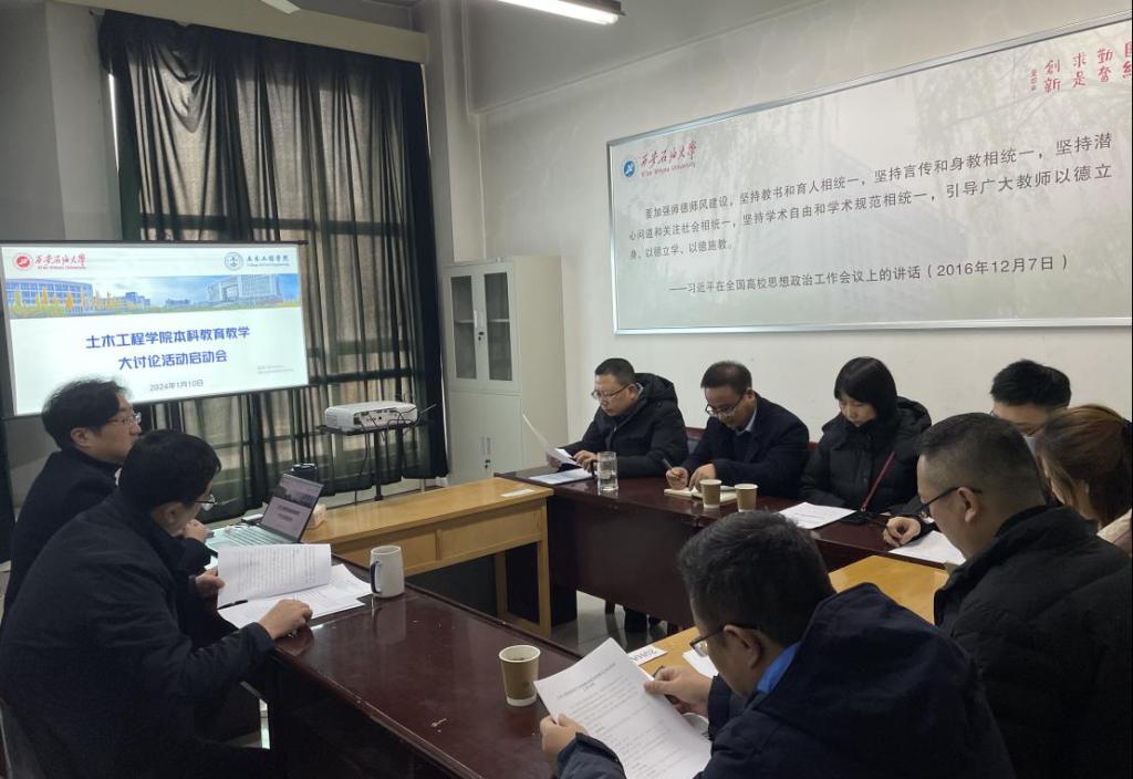 为进一步形成对本科教育教学高质量发展的思想共识与行动自觉,深化本科教育教学改革,全面提升人才培养质量。土木工程学院于1月10日上午在雁塔校区2教1105召开本科教育教学思想大讨论活动启动会。会议由副院长崔莹主持,学院党委书记陈涛、副院长李俊亭、副院长崔莹、各系(中心)主任及教师代表参加会议。