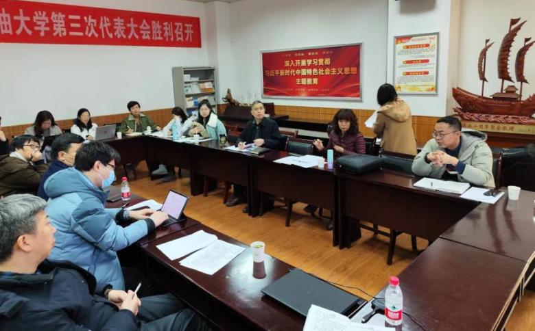 为持续深入学习贯彻习近平新时代中国特色社会主义思想和党的二十大精神,进一步落实中国共产党beat365官方网站第三次代表大会要求,深化本科教育教学改革,推动学校本科教育高质量发展,全力做好本科教育教学审核评估评建工作,根据学校《关于在全校开展本科教育教学思想大讨论活动的通知》要求,经济管理学院于1月12日上午召开本科教育教学思想大讨论会议。会议邀请西安科技大学管理学院副院长史玉芳教授线上分享了审核评估迎评促建工作经验以及学术型人才培养举措。学院党委书记王宏卫,院长王君萍,以及各系主任、专业负责人、办公室主任参加会议。会议由副院长吴勋主持。