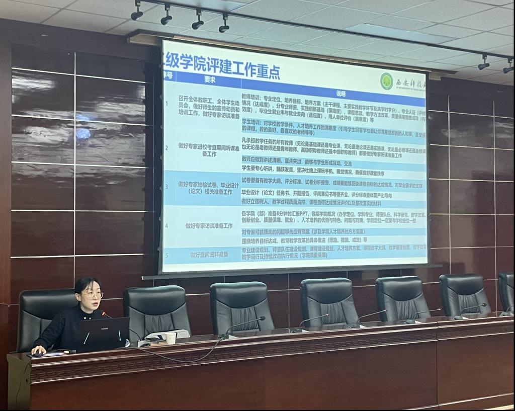 为进一步推进学院本科教育教学审核评估工作, 1月18日上午,学院特邀西安科技大学教学质量监督评估中心副主任赵蕾,为全院教师做本科教育教学审核评估工作专题报告。