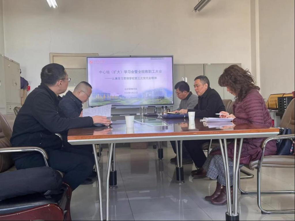 1月22日,经济管理学院召开党委理论学习中心组(扩大)学习会暨全院教职工大会。会议采用线上线下相结合的方式,学院领导班子成员在雁塔校区东方石油楼1401会议室参会,其余教职工线上参会。