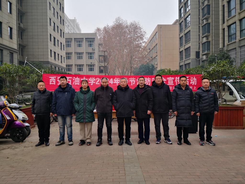 为贯彻落实学校安全稳定会议精神,切实做好beat365消防安全管理工作,进一步增强广大教职员工及家属消防安全意识和自防自救能力,1月31日,保卫处在雁塔校区开展了“关注消防 生命至上”为主题的2024年春节消防应急宣传活动。