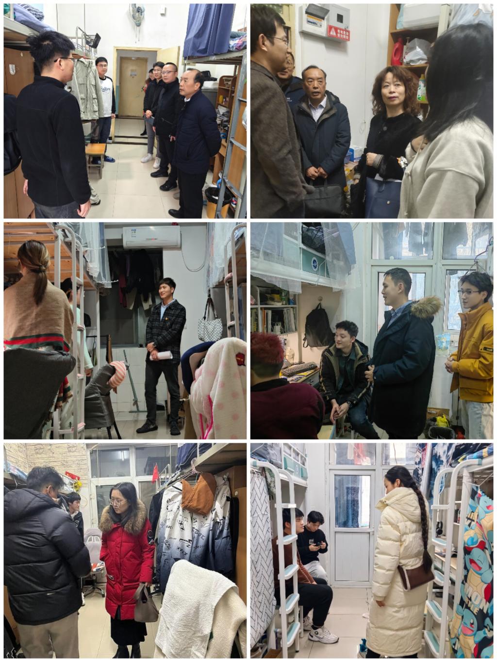 三是聚焦优良舍风,走访宿舍问需求。宿舍是校园生活的驿站和校园文化的窗口,是学生临时组建的“小家”,营造良好的舍风对于优化学生的生活环境,保护学生的身心健康,提高学习效率具有重要意义。2月24—27日,学院党政领导、学生工作干部深入学生公寓楼,在学生宿舍,与学生们亲切交谈,详细了解大家的返校情况、上课准备、学业规划等,对宿舍卫生及安全隐患等方面进行了全面检查,叮嘱学生铸牢树立安全意识,注意用电、用水、防火等安全,注重个人卫生,保持宿舍卫生,营造良好的生活环境,提醒学生加强防范意识,谨防电信诈骗,遵守学校公寓管理的各项规定,共同营造良好整洁有序的住宿环境,鼓励学生尽快调整状态,做好新学期的学业规划、就业规划,以崭新的姿态和饱满的热情迎接新学期的学习和生活。