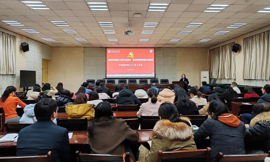 3月1日下午,外国语学院在雁塔校区会议中心第三会议室召开领导班子述职述廉暨全院教职工大会。学院党政领导及全体教职工参加会议。会议由学院党委书记田虹霞主持。
