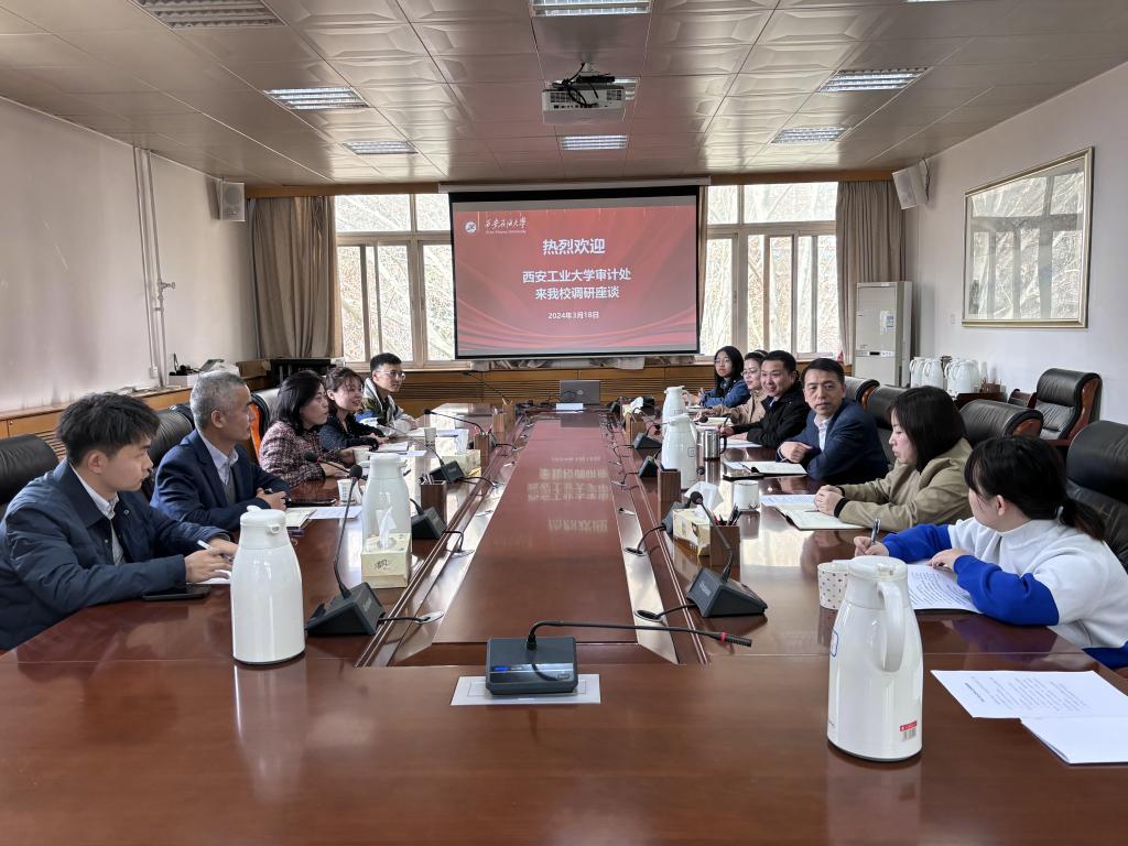 2024年3月18日下午,西安工业大学审计处处长党江燕一行5人到beat365调研交流。beat365审计处全体人员参加座谈会,处长李国柱对西安工业大学审计处同仁的来访表示热烈欢迎。