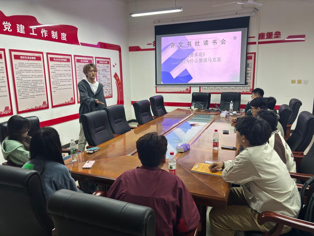活动现场气氛热烈,图书分享者孔壹萱深入浅出的对《资本论》进行了解读,不仅剖析了《资本论》的核心理论,更结合了当下的社会现实,让同学们能够更直观地理解马克思主义在当代社会的价值和意义。孔壹萱从马克思主义的历史背景出发,讲述了其产生的社会根源和思想基础,进而深入探讨了《资本论》中关于商品、货币、剩余价值等核心概念的分析。他通过生动的案例和生动的语言,将这些抽象的理论具象化,让同学们能够更好地领悟其中的精髓。在互动环节,同学们积极提问,孔壹萱耐心解答,双方就马克思主义在当代社会的应用和发展进行了深入的探讨。