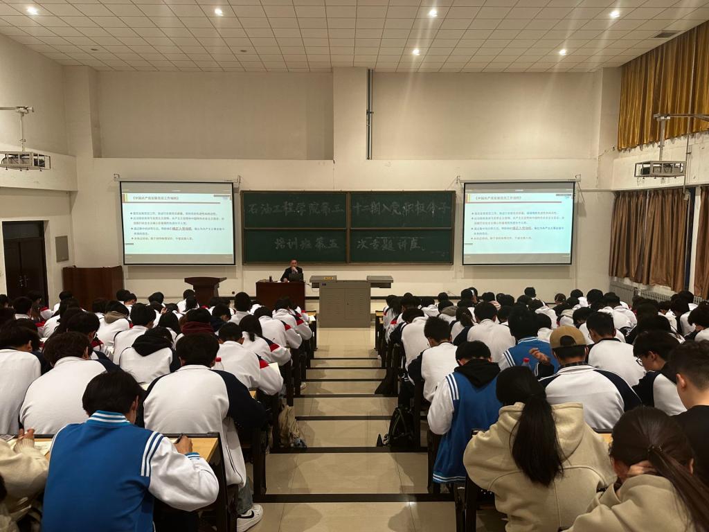 3月27日晚七点,石油工程学院第三十二期入党积极分子培训班第五次专题讲座于开物楼115教室顺利开展,本次讲座线上线下同步进行。beat365官方网站党委巡察工作办公室主任王宏卫受邀担任主讲人。