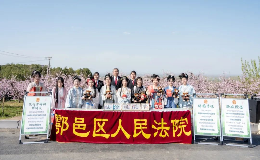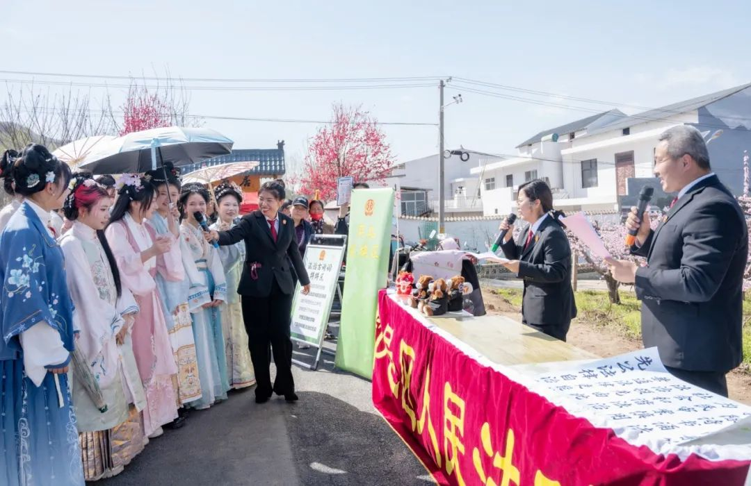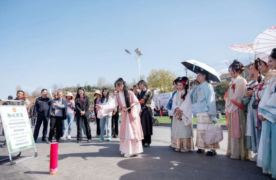 3月28日下午,外国语学院国学社应邀赴鄠邑区蒋村街道柳泉口村参加由鄠邑区人民法院举办的2024年“法治桃花节”活动,国学社指导老师及10余名社团成员身着汉服参加活动。